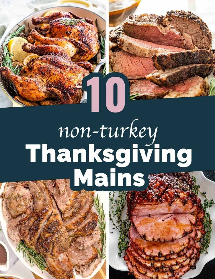 collage of images with thanksgiving main dishes.
