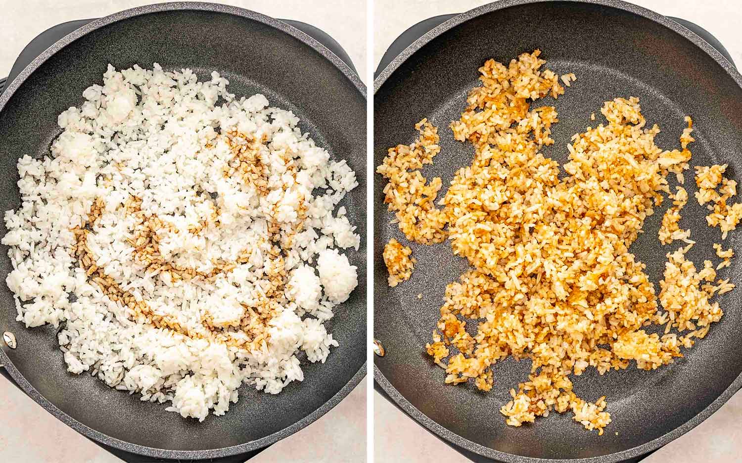 - Day-old rice crisps up way better than fresh. Fresh rice = mush.
